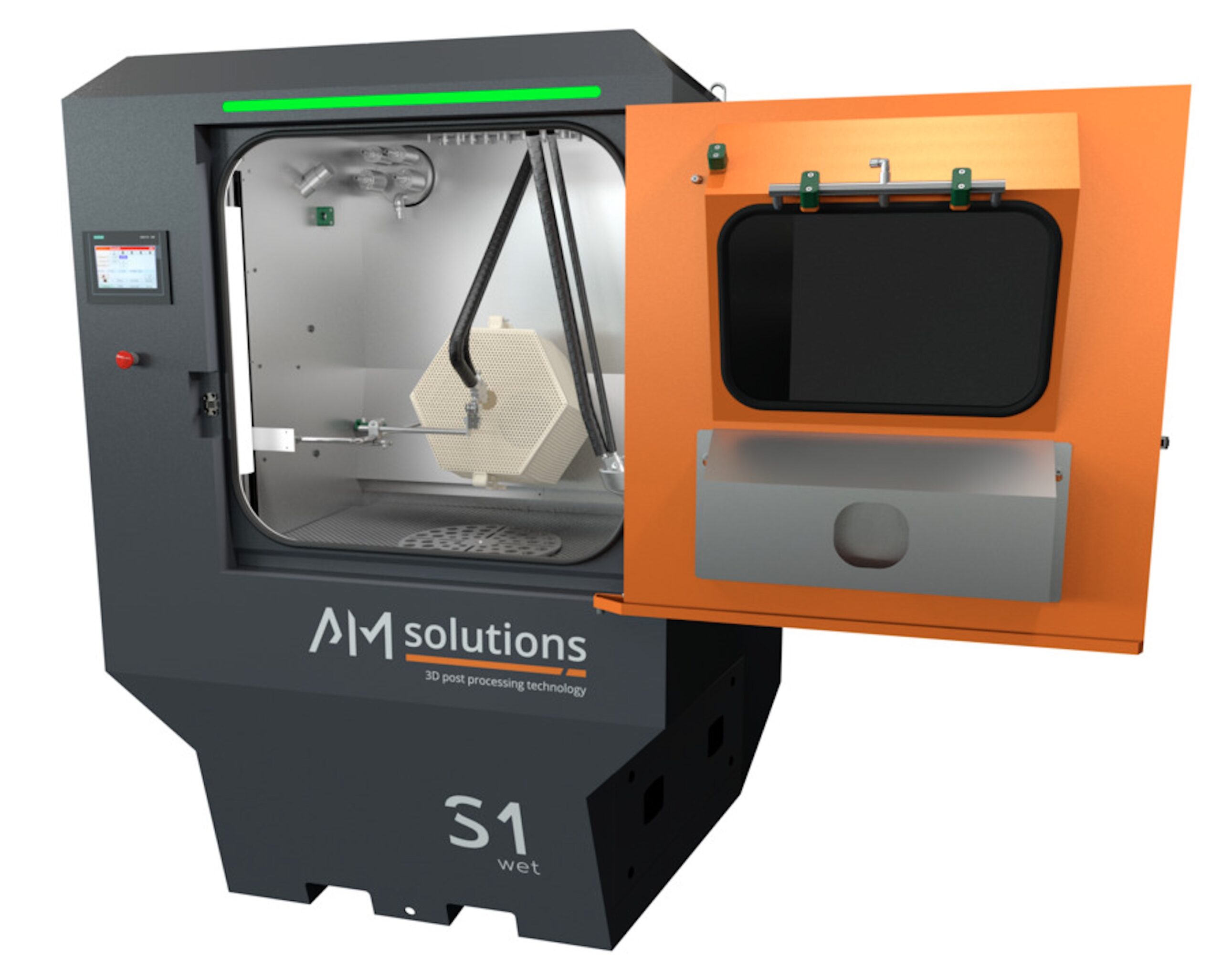 Rösler’s RMBC Tumble Belt Blast Machine which will be on display at MACH is essentially for de-sanding, descaling, de-rusting, deburring and creating homogeneous surface finishes, and is characterised by perfect cleaning of difficult-to-reach surface areas, high equipment uptime, high process stability, and consistent shot blasting results. The R220EC Rotary Vibrator, also on display, has an inbuilt separation system, is designed for processing batch parts, and is perfect for all metal finishing applications from deburring to polishing. Being shown alongside these traditional finishing machines, attendees will also find two AM post processing technologies, the M1 Basic and the S1 Wet. The M1 Basic promotes superior surface finish of metal or plastic AM parts in a cost-effective and repeatable fashion, and demonstrates how mass finishing technologies excel in eliminating layer lines, burrs, and other surface imperfections on AM parts, resulting in a flawless finish that enhances both aesthetics and functionality. The S1 Wet is a versatile wet-blasting solution for cleaning and finishing surfaces on metal and plastic parts and demonstrates perfectly the usefulness of shot blasting technologies for AM parts.